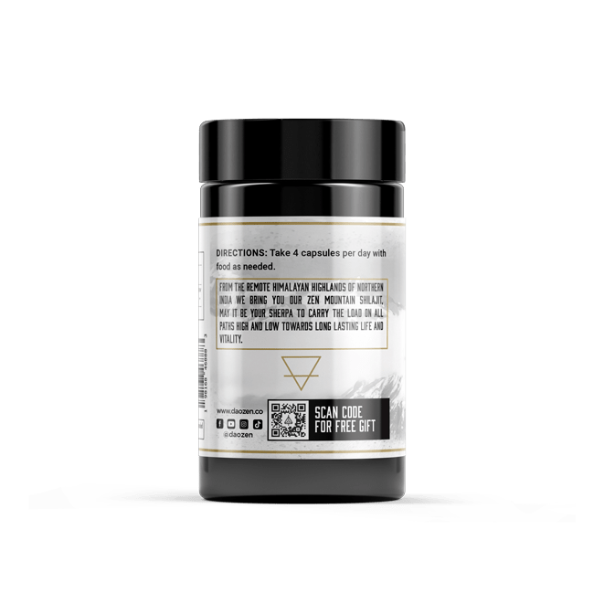 Our Zen Mountain Shilajit delivers 2200MG of Pure Shilajit Powder per serving of 4 capsules. Take daily with food and enjoy the magical difference. We love this taken with our Everyday Tonics to maximize our daily vitality for our super human avatar suit.